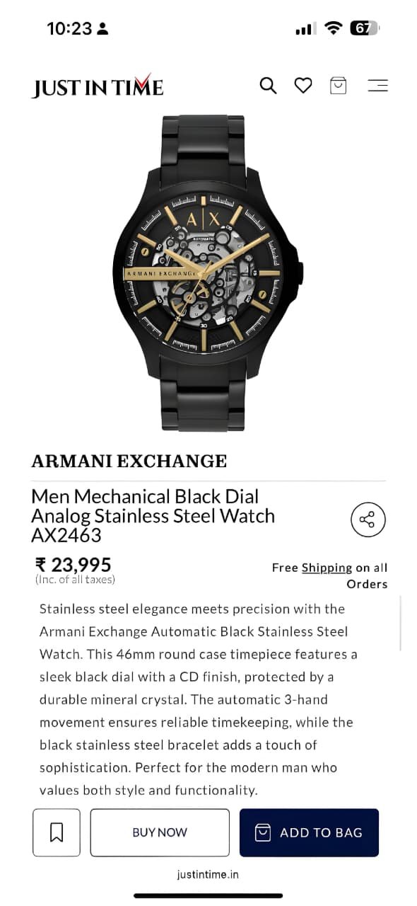 Powered by a reliable Japanese automatic machinery, this timepiece operates through natural wrist movement — no battery required. Finished with premium detailing and packaged in an Armani Exchange hard case brand box, it’s ideal for both everyday wear and statement styling.