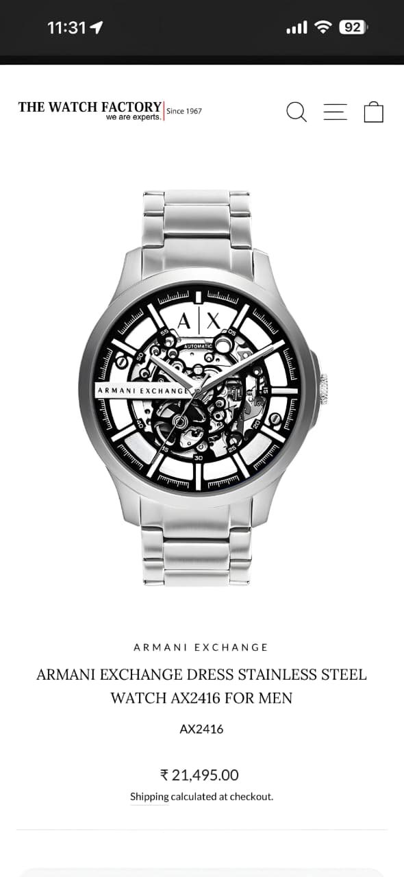 The 3-hand analog display with elegant silver needles and radium night glow ensures readability in all lighting conditions. AX branding on the dial adds a subtle yet distinctive luxury signature.