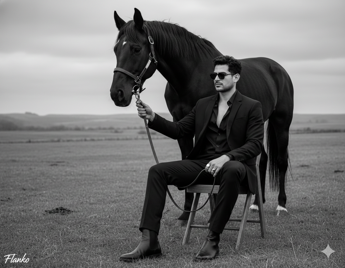 Custom AI Image – Viral 4K AI Dark Knight Aesthetic: Black Horse & Monochrome Luxury – 4