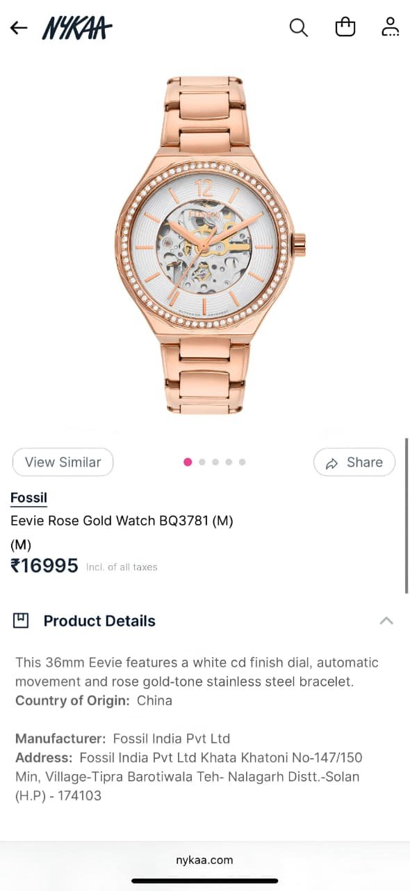 Crafted with a rust-free stainless steel rose gold bracelet and a transparent back glass, the watch showcases Fossil’s commitment to quality and refined detailing. Lightweight, stylish, and versatile, it’s perfect for both everyday wear and special occasions.